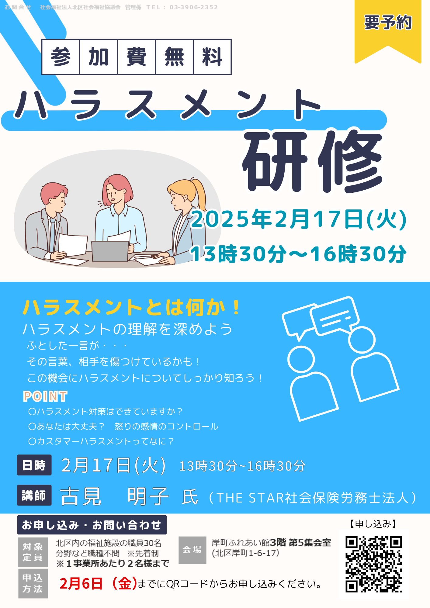 北区社会福祉協議会 (管理係 研修担当)TEL 03-3906-2352